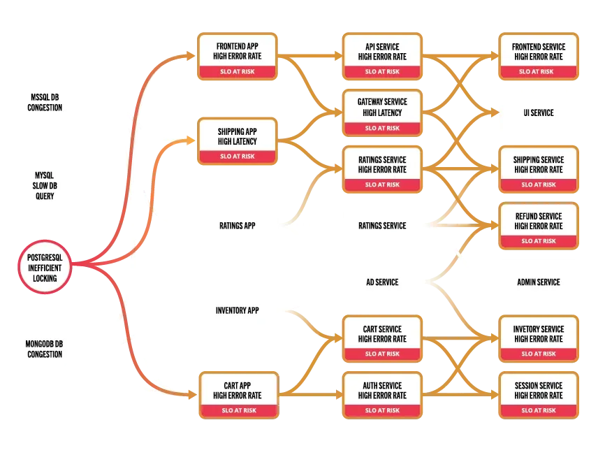 - The likelihood a service or resource bottleneck may cause performance degradations on dependent services.